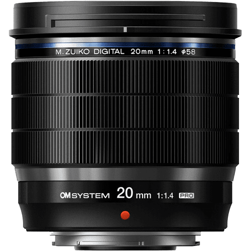 The versatile M.Zuiko Digital ED 20mm f/1.4 is a 40mm equivalent wide-angle prime lens for Micro Four Thirds mirrorless cameras.